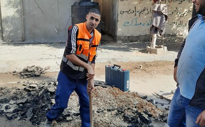 طواقم البلدية من قسم المياه والصرف الصحي يقومون باعمال الصيانة