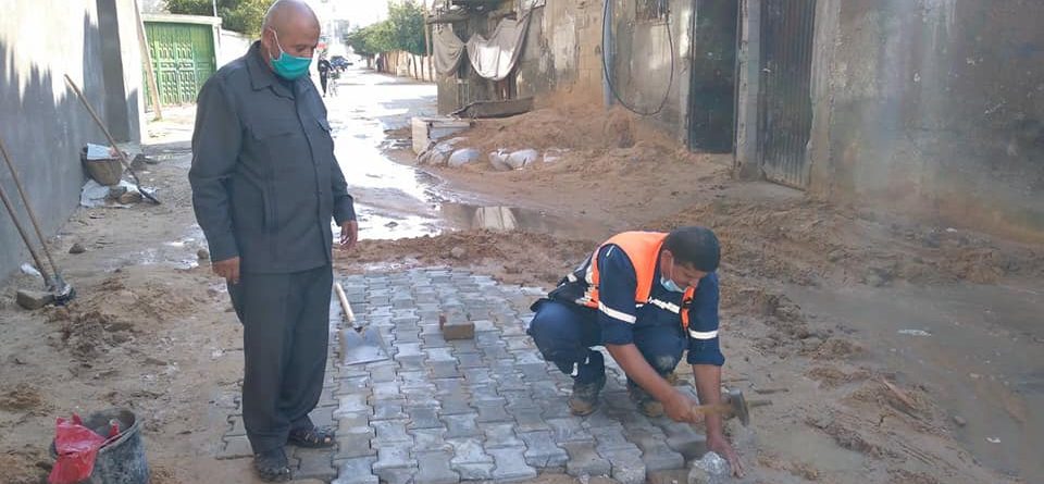 بلدية المغازي تقوم بصيانة حفر وتبليطها في منطقة بلوك B