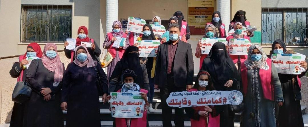 لجنة المراة والطفل التابعة لبلدية المغازي تنفذ مبادرة” كمامتك حمايتك”