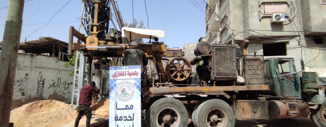 بلدية المغازي بدعم من قوافل الخير” تشرع بإنشاء بئر مياه في بلوك ” b “