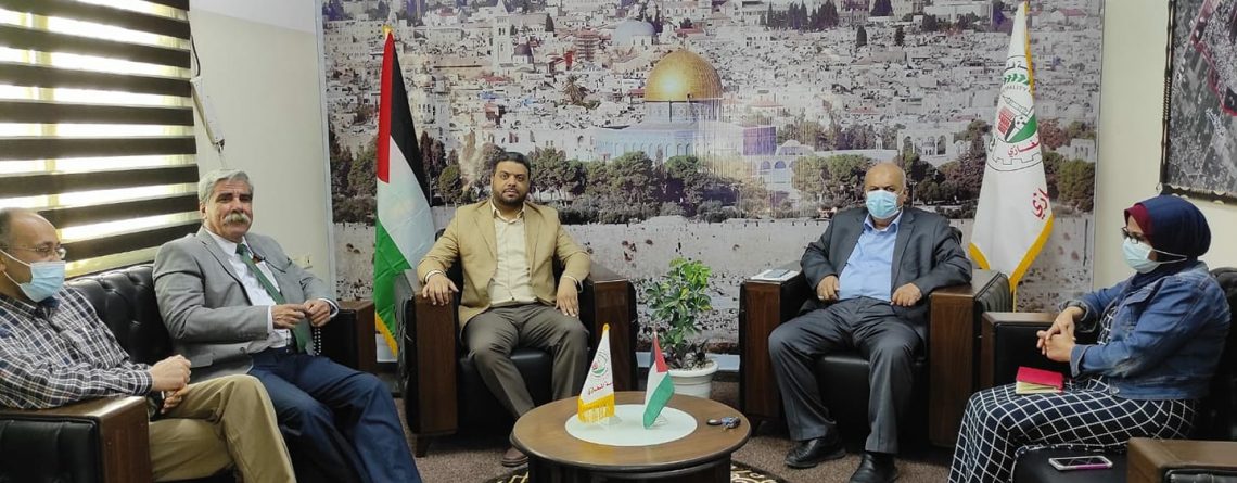 استقبل رئيس بلدية المغازي أ.حاتم الغمري في مكتبه وفداً من وكالة الغوث الدولية ممثلاً بالأخ م.محمد الرياطي “أبو عمر” رئيس دائرة الهندسة والمشاريع وتطوير المخيمات، والأخت أ.ميراندا بركات رئيس المنطقة، والأخ د.تيسير عبد الجواد عضو في دائرة الجودة في وكالة الغوث الدولية، بحضور م. إبراهيم الخطيب رئيس قسم المياه والصرف الصحي ، وأ. أديب أبو غزال مسؤول العلاقات العامة .