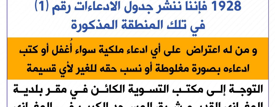 جدول الادعاءات رقم (1) الخاص بالمنطقة الوسطى