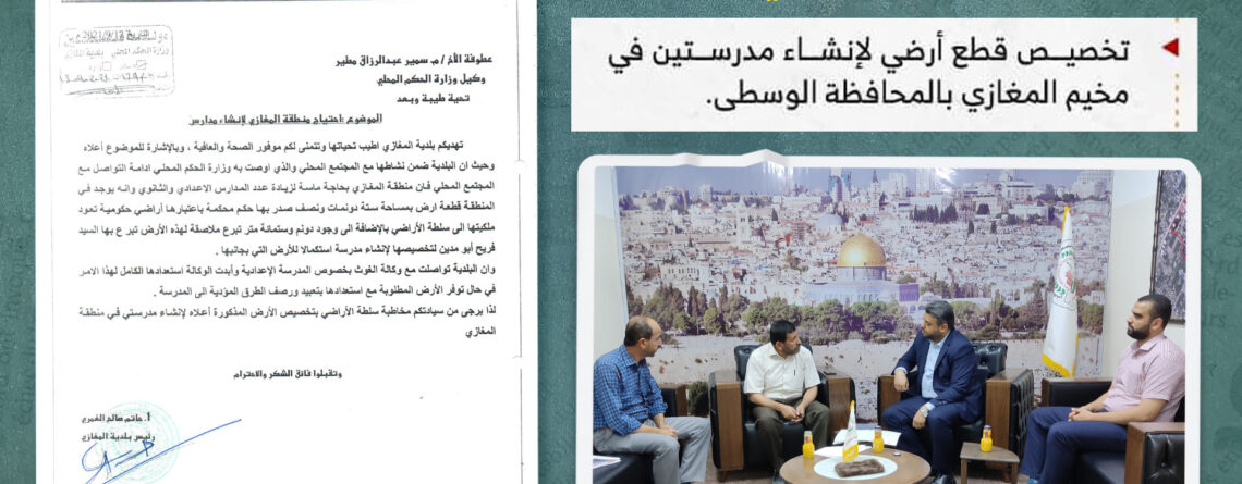بلدية المغازي تزف بشرى تخصيص قطع أراضي لصالح قطاع التعليم