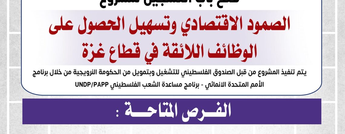 التسجيل لمشروع الصمود الإقتصادي وتسهيل الحصول على الوظائف اللائقة في قطاع غزة