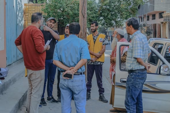 طواقم العمل التابعة لبلدية المغازي خلال قيامهم بواجبهم خلال العمل بنظام الطوارىء.
