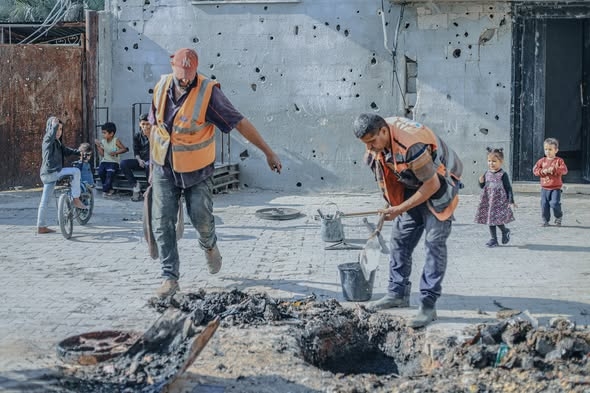 بلدية المغازي وسط قطاع غزة تقوم بأعمال صيانة لمناهل الصرف الصحي المتضررة