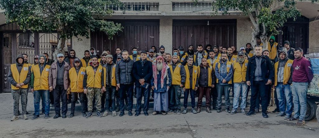 طواقم بلدية المغازي من قسم المياه والصرف الصحي خلال عملهم بنظام الطوارىء