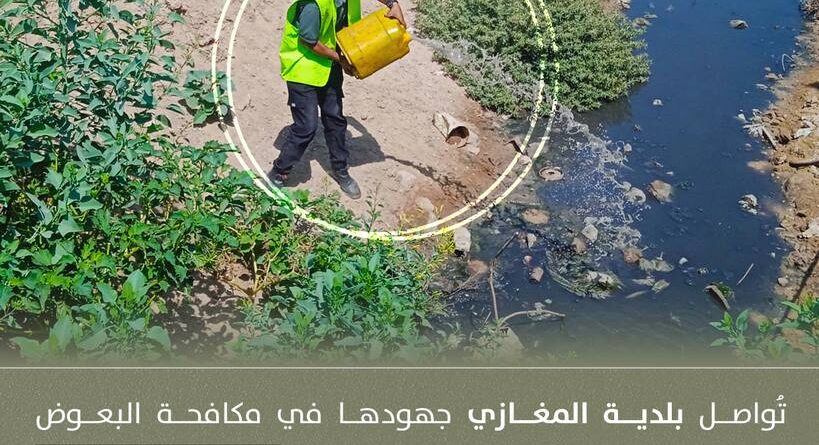 بلدية المغازي تواصل حملات رش البعوض رغم التحديات