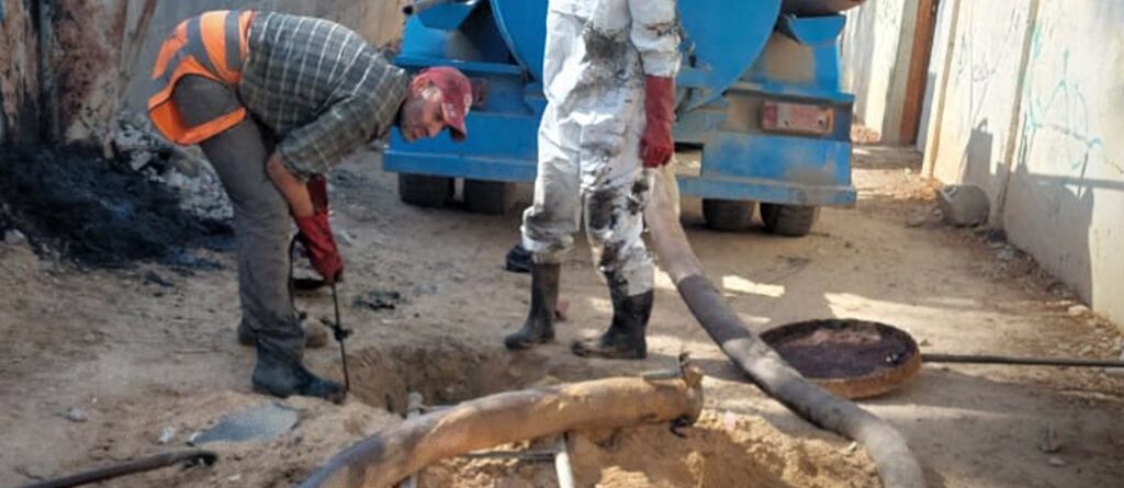 بلدية المغازي تُنجز أعمال تنظيف لشبكة الصرف الصحي في حي الزعفران