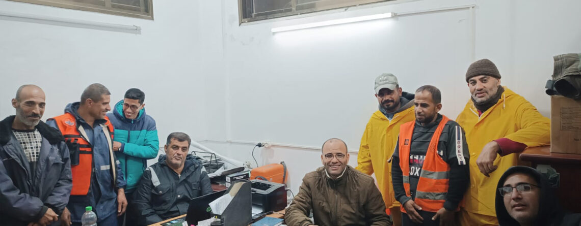 بلدية المغازي تواصل جهودها الميدانية لمواجهة آثار المنخفض الجوي في المخيم.
