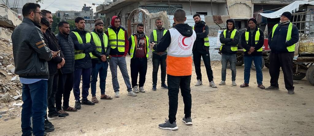 الهلال الأحمر الفلسطيني ينفذ نشاطاً توعويًا لعمال النظافة في بلدية المغازي